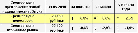 Средняя цена предложения жилой недвижимости Омска на 31.05.2010 г.