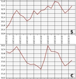 На торгах межбанковской валютной биржи 1 июня средневзвешенный курс доллара США с расчетами "завтра" поднялся более чем на 40 копеек - с 30,8142 рубля до 31,2154 рубля. Средневзвешенный курс евро по итогам ЕТС вырос до 38,0255 рубля, что на 13 с небольшим копеек выше предыдущего результата торгов (37,8905 рубля 31 мая).