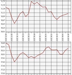 Соответственно стоимость бивалютной корзины (0,45 евро и 0,55 доллара) увеличилась более чем на 7 копеек - с 34,264 рубля до 34,3415 рубля.