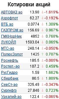 Закрытие на площадках РФ прошло неплохо, большинству "голубых фишек" удалось финишировать с плюсом. Так, в зеленой зоне завершили день акции "Лукойла" (+0,07%), "Газпрома" (+0,9%), "Норникеля" (+0,7%). Неплохо смотрелись и бумаги "Сургутнефтегаза" (+0,7%). И все же наиболее интересные позиции сформировались в акциях банковского сектора - обе "фишки" - "Сбербанк" и ВТБ сегодня смотрелись привлекательно, поднявшись на 1,8% и 1,3% соответственно. На ММВБ также подорожали акции "Газпром нефти" (+1,3%), "Полюс Золота" (+1,6%), "Роснефти" (+0,4%), "Ростелекома" (+0,5%), "Татнефти" (+0,1%).