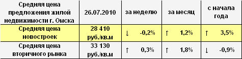 Средняя цена предложения жилой недвижимости Омска на 26.07.2010 г.