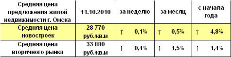 Средняя цена предложения жилой недвижимости Омска на 11.10.10 г.