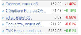 Лучше рынка на позитивных корпоративных новостях торговались акции металлургического сектора: "Норильский никель" прибавил 0,61%, НЛМК подрос на 1,86%. Рекордные цены на золото поддержали котировки "Полюс Золота" (+0,97%).