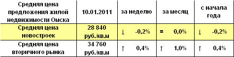 Средняя цена предложения жилой недвижимости Омска на 10.01.2011 г.