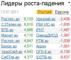 Хорошие темпы роста показали и бумаги сырьевых компаний - металлургических и нефтяных. "Норникель" завершил торги, прибавив 2,91%, "ЛУКОЙЛ" - 3,78%, "Роснефть" - 3,77%. Аналитик Александр Потавин замечает, что такому разогреву котировок ГМК способствует повышение прогнозной стоимости его акций с $230 до $300 за штуку с рекомендацией на покупку известным инвестбанком. Кроме того, подъему бумаг металлургов способствовало сильнейшее наводнение в Австралии. "Причем бедствие не завершилось и его будущие масштабы неизвестны. На наш взгляд, в ближайшие дни металлургические компании будут локомотивами роста", - рассказала Анна Крылова, аналитик "Абсолют Инвест".