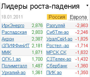 "В целом результаты работы Citigroup можно оценить положительно, однако ожидания рынка были несколько выше, и потому это вызвало негативную реакцию игроков, особенно заметную в акциях банковского сегмента", - прокомментировал ситуацию эксперт "Абсолют Банка" Иван Фоменко. На лапу "медведям" сыграла и статистика по американской экономике: хуже прогнозов оказался индекс деловой активности в обрабатывающей промышленности. По итогам дня индекс ММВБ опустился до уровня 1765.3 пунктов, потеряв 0,36%, индекс РТС упал на 0,04% до отметки 1900.94 пункта.