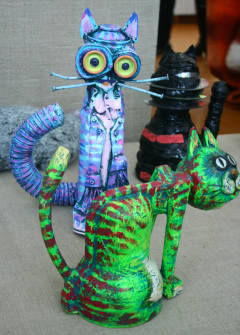 Витрины заполнили фигурки кошек со всего мира - спящие японские, которые считались символом удачи, индонезийские кошки - защитницы и обереги дома, и много других грациозных красавиц из разных уголков мира. В остальной части экспозиции разместились игрушки и украшения ручной работы, малая пластика и скульптуры, а на стенах - картинные инсталляции омских художников.
