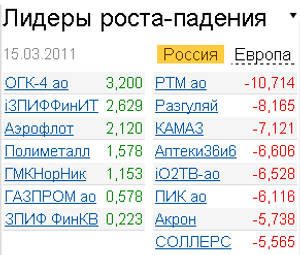 Коррекция углеводородов оказала давление на нефтегазовый сектор: "ЛУКОЙЛ" (-2,4%), "Роснефть" (-2,2%), "Сургутнефтегаз" (-3,9%). Илья Фролов, ведущий аналитик "Сбербанка", отмечает акции "Газпрома" - еще одной "голубой фишки", которая, несмотря ни на что, завершила день ростом (+0,58%). "Поддержку "Газпрому" оказал рост спотовых цен на природный газ в европейском хабе Зебрюгге, а также перспективы расширения поставок топлива на азиатские рынки после катастрофы в Японии", - прокомментировал Фролов.