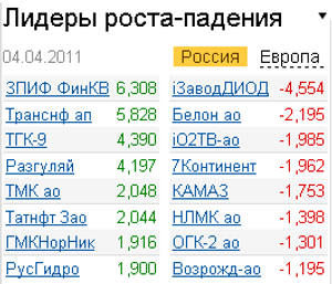 В понедельник, 4 апреля, российские биржевые индексы достигали новых максимумов. Росту способствовал общий позитивный внешний фон и, прежде всего, цены на нефть. Фьючерс на нефть марки Brent переписал свой годовой максимум, что поддержало покупки и позволило "быкам" вывести индекс ММВБ на новые вершины.