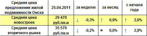 Средняя цена предложения жилой недвижимости Омска на 25.04.2011 г.