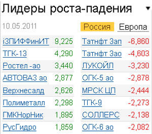 После пятничного закрытия реестра 10 мая продают свои акции инвесторы "ЛУКОЙЛа" - снижение в его котировках достигло 3,2%. Еще одна "жертва" закрытия реестра - "Татнефть", ее обыкновенные акции в минусе на 4,6%, а привилегированные - на 6,9%. Негативом для отдельных бумаг генерирующих компаний стало намерение бизнесмена Михаила Прохорова продать свою долю в "Квадре", предполагаемым покупателем называют "ИНТЕР РАО". Как следствие, акции "Квадры" выросли на 0,42%, ТГК-13 подорожали на 4,3%, ТГК-6 на 3,9%, в то время как бумаги ТГК-9 снизились на 2,3%, ТГК-1 - на 1,2%, ТГК-2 - на 0,2%.