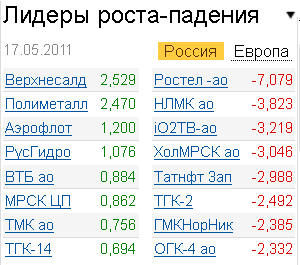 На торги отдельными бумагами сильно повлиял факт пересмотра состава индекса MSCI Russia, который является ориентиром для многих международных инвесторов, вкладывающих деньги в российские активы. В результате - главным разочарованием дня стали акции "Ростелекома", просевшие за сессию на 7,% и "Холдинга МРСК", снизившиеся на 3%. Бумаги этих компаний, вопреки ожиданиям, не были включены в индекс MSCI Russia. Кроме того, на падение акций телекоммуникационного гиганта, по мнению экспертов, повлияло решение совета директоров акционерного общества не выплачивать дивиденды за 2010 год.