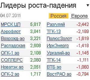 4 июля российский рынок акций завершил на мажорной ноте. По итогам дня индекс ММВБ вырос на 0,472% до отметки 1706,12 пункта, индекс РТС - на 0,56% до 1948,48 пункта. В ближайшие дни может состояться коррекционное снижение с достигнутых величин.