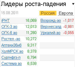 Настрой покупать поддержали данные по ВВП Японии во II квартале - показатель снизился на 0,3% при прогнозируемом падении на 0,7%. Страна демонстрирует удивительную стойкость и быстрые темпы восстановления после разрушительного мартовского землетрясения. На руку отечественным "быкам" сыграли и восстанавливающиеся цены на сырьевые активы, а также укрепляющийся рубль. Кроме того, в понедельник многие компании опубликовали свои полугодовые отчетности, которые также были восприняты участниками торгов благосклонно. В течения дня индикаторы умеренно росли, и по итогам сессии индекс ММВБ прибавил 2,73%, остановившись на отметке 1510.69 пункта, индекс РТС поднялся на 3,78% и закрылся на отметке 1655.03 пункта.