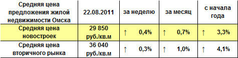 Средняя цена предложения жилой недвижимости Омска на 22.08.2011 г.