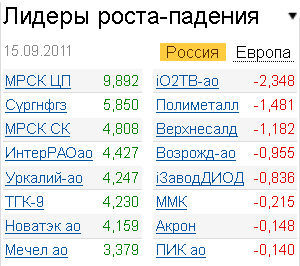 В лидерах роста сессии на российском рынке - акции "Сургутнефтегаза", "НОВАТЭКа", "Уралкалия", "ИНТЕР РАО", "Мечел" и "Северсталь". В четверг биржа РТС на час остановила торги акциями "Ростелекома" в связи с ростом котировок более чем на 20% по сравнению с ценой закрытия предыдущего торгового дня. Ажиотаж мог быть вызван новостью о том, что в ближайшие дни эмитент подаст заявку на листинг компании на Лондонской фондовой бирже. Также в течение сессии РТС объявляла стоп-торги для акций "АФК Система". Хуже рынка торговался "Полиметалл" на фоне снижения цен на золото. По итогам дня индекс ММВБ вырос на 1,3% до 1525.28 пункта, РТС - на 2,1% до 1603.39 пункта.