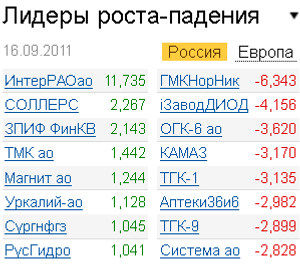 Но снижение на российском рынке не было катастрофичным. По итогам дня индекс ММВБ потерял 0,9% до значения 1 511,50 пункта, в основную сессию индекс РТС снизился на 1,77% до 1574,94 пункта. Индекс ММВБ утянули вниз акции "Норильского никеля", которые по итогам дня снизились на 6,343%. Падение легко объяснимо - фиксация прибыли. В последнее время акции компании выросли более чем на 20%, при этом рынок в этот период снижался. Но для усиления продаж под вечер были объективные причины. Генеральный директор компании Владимир Стржалковский отверг идею о выплате дивидендов по акциям компании за первое полугодие 2011 года. Причина очевидна - buy-back состоится в сентябре - октябре текущего года. На этой неделе была объявлена цена выкупа - 306 долларов за штуку.
