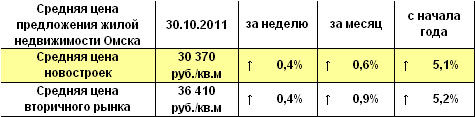 Средняя цена предложения жилой недвижимости Омска на 03.10.2011 г.