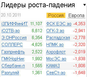 Значительным распродажам в четверг подверглись бумаги ряда энергетиков - "ФСК ЕЭС" (-4,3%), ОГК-3 (-2,9%), "Мосэнергосбыта" (-1,8%), а также металлургов - НЛМК (-2,3%), ММК (-1,6%). Кроме того, хуже рынка выглядели акции "КАМАЗа" (-1,8%), "Аэрофлота" (-2%), "Распадской" (-2,7%). В лидерах роста оказались бумаги "СОЛЛЕРСа" (+4,6), "Э.ОН России" (+6,3), "Газпром нефти" (+2,5%), "Сбербанка" (+1,5%), "Норникеля" (+1,9%).