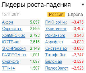 Инвесторов, как и прежде, беспокоит неуверенность в возможности решить нынешними методами текущую ситуацию на европейском континенте. Вызывает вопросы и возможность реализовать задуманное усилиями новых кабинетов министров Греции и Италии, несмотря на то, что раннее игроки положительно оценили смену руководства в этих проблемных странах. Аналитик УК "Райффайзен Капитал" Михаил Кузин считает, что соответствующие настроения у инвесторов, связанные с озабоченностью относительно долговых проблем, могут продлиться еще не один месяц, а значит, нервозность на рынках сохранится. Сэйлз-трейдер ИК "Проспект" Энвер Билялов уверен, что конкретика европейских регуляторов дала бы возможность вздохнуть спокойно и перевести дух, однако можно лишь уповать на подобное поведение ЕЦБ. В Испании прошел аукцион по размещению 12-18 месячных бумаг, однако продано было менее запланированного объема в 3,5 миллиарда евро, что также не играет на руку оптимистам. Меж тем, ставки доходности по облигациям Италии во вторник поднялись до 7,039%.