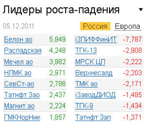 По итогам торгов в понедельник индекс ММВБ вырос на 0,8% до 1 517,89 пункта, за основную сессию РТС прибавил 0,9% до 1559,28 пункта. В течение дня повышенным спросом пользовались акции металлургических и угольных компаний: "Белона" (+5,85%), "Распадской" (+4,25%), "Мечела" (+3,98%), НЛМК (+2,97%) и "Северстали" (+2,78%). Акции первых росли на хорошей отчетности "Белона" - выручка компании за 9 месяцев 2011 года составила $490 миллионов, что на 24% выше показателя за аналогичный период 2010 года.