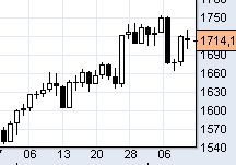 В итоге индекс ММВБ к закрытию прирос на 0,5% и составил 1611.88 пункта, индекс РТС поднялся на 0,9% до отметки 1729.91 пункта.