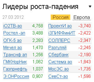 Лидерами роста стали акции "Норникеля" (+1,06%), ОГК-5 (+2,28%), "Мечела" (+1,47%), "Э.ОН Россия" (+0,91%). Бумаги "Ростелекома" (+3,49%) выросли благодаря поручению президента РФ о скорой реорганизации компании. Идеи возможного будущего повышения дивидендов по "префам" оператора вытащили цены акций при падающем рынке, считает Николай Подлевских, начальник аналитического отдела ИК "Церих Кэпитал Менеджмент". Привилегированные бумаги "Транснефти" (+1,26%) получили поддержку в связи с завершением сделки по приобретению дочерней компанией "Транснефть Усть-Луга" доли в уставном капитале "Невская трубопроводная компания" в размере 26%, отмечает Виталий Манжос, аналитик ИГ "Норд-Капитал".
