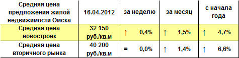 Средняя цена предложения жилой недвижимости Омска на 16.04.2012 г.