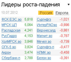 Также в течение дня наблюдался спрос на акции банков - ВТБ (+1,12%) и "Сбербанка" ("обычки" +0,9%, "префы" +2,79%). По мнению Ивана Фоменко, начальника отдела доверительного управления "Абсолют Банка", это свидетельствует о повышении доверия инвесторов к финансовому сектору в целом. "Думается, свою роль в этом сыграло решение о рекапитализации испанских банков", - отмечает эксперт.