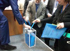 Всего проголосовали 103 человека, 1 бюллетень признали недействительным. За Татьяну Еременко, и.о. президента ООСП, голоса отдали 59 человек или 57,8%, за Юрия Чащина, владельца сети "Провиант", - 24 человека (23,5%), за Николая Артемьева, гендиректора группы компаний "Нефтегаз", - 17 человек (16,7%) и за Александра Зайцева, учредитель Экспертно-оценочной компании ООО "Профэкс", - 2 человека (1,96%).