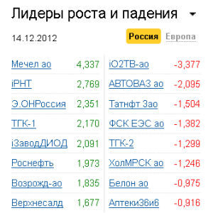 Невыразительная динамика задавалась смешанным внешним фоном. С одной стороны, негативные сигналы поступали из-за океана. На Уолл-Стрит возрастает напряженность в связи с тем, что переговоры по проблеме "фискального обрыва" никак не могут сдвинуться в мертвой точки. Между тем, до рождественских праздников остается все меньше времени. Аналитики, однако, верят в то, что политики в итоге проявят благоразумие, и автоматического увеличения налогов и сокращения бюджетных расходов не произойдет. "Хотя обе стороны делают достаточно грозные заявления, тем не менее, неразрешимых вопросов, по которым им не удалось бы найти точек соприкосновения, нет. Вероятнее всего, либо та или иная договоренность все же будет достигнута, либо принятие решения по вопросу fiscal cliff перенесут на дальнейший период", - считает Дмитрий Кулешов, заместитель аналитического отдела "ИК РУСС-ИНВЕСТ". Однако пока американские инвесторы пребывают в состоянии нервозности, которое передается и на другие площадки, оттягивая начало новогоднего "ралли".