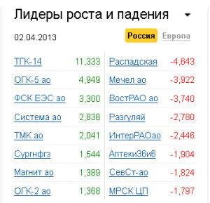 Сумели подрасти во вторник бумаги ТГК-14 (+11,33%), ОГК-5 (+4,95%), "ФСК ЕЭС" (+3,3%), АФК "Система" (+2,84%). Также среди лидеров роста значились "префы" "Сургутнефтегаза" (+1,54%).