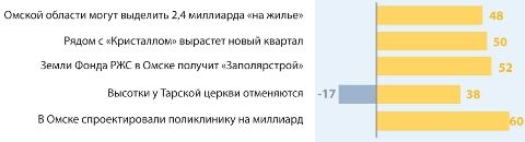 Планы по строительству поликлиники стоимостью почти в миллиард рублей набрали 60% актуальности. Полностью положительная новость возглавила рейтинг, получив преимущество всего в 5%.