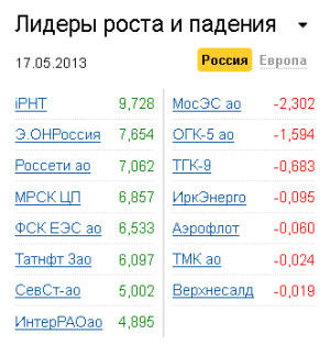 В лидерах повышения в течение дня прочно держались бумаги "Э.ОН Россия". Ажиотажный спрос был спровоцирован сообщениями о том, что совет директоров компании рекомендовал собранию акционеров направить на выплату дивидендов 100% прибыли компании, полученной в 2012 году. В пересчете на одну акцию размер выплат составит 0,29 копеек. "Дивидендная доходность составит около 10%, что по меркам отечественной генерации является рекордным значением", - резюмируют аналитики БФА. "Данная новость, безусловно, позитивна для котировок акций генератора, она лишний раз подтверждает высокий уровень корпоративного управления в компании, одной из немногих в секторе электроэнергетики, откуда не разбегаются инвесторы", - полагают эксперты. Руководство эмитента объявило также, что в дальнейшем на выплаты акционерам будет направляться от 40 до 60% чистой прибыли.