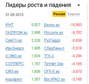 В числе значимых корпоративных событий дня можно также отметить неплохую финансовую отчетность "Московской биржи", которая по итогам 1 квартала 2013 года увеличила чистую прибыль по МСФО на 21% - до 2,6 млрд рублей. Котировки акций биржи торговались в небольшом "минусе". Свою квартальную отчетность в пятницу представил также "ВЕРОФАРМ", чистая прибыль компании снизилась на 31% - до 342,7 млн рублей. К окончанию торгов бумаги "ВЕРОФАРМа", напротив, прибавили 0,4%.