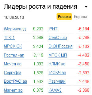 Еще один российский ритейлер - "РОСИНТЕР" - в понедельник представил финансовую отчетность за 1 квартал 2013 года. По сообщению компании, чистый убыток за отчетный период снизился на 26% и составил 26,4 миллиона рублей. На этой новости акции компании по итогам дня прибавили 0,9%. За 1 квартал отчиталась также "Башнефть", чья чистая прибыль по МСФО снизилась на 10% - до 11,9 млрд рублей. На этом фоне обыкновенные акции компании потеряли 1,7%, "префы", наоборот, выросли на 1,5%.