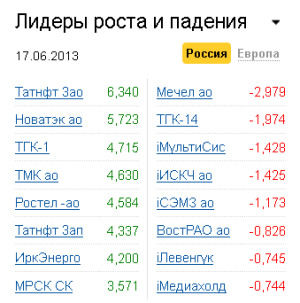 Поддержку фондовому рынку РФ оказывают также довольно высокие цены на нефть - котировки "черного золота" продолжают плавно "ползти" вверх, к новым вершинам. Текущий рост во многом является результатом обострения конфликта в Сирии, в который может оказаться втянутым и Иран. Дмитрий Чернядьев, аналитик УК "Альфа-Капитал", считает, что риски дальнейшего снижения поставок из Ирана есть. Однако эксперт отмечает, что пока на мировом рынке не наблюдается дефицита нефти и у Саудовской Аравии есть свободные мощности по добыче, серьезных предпосылок для большого скачка цены нет. Как бы то ни было, в 19:45 мск за "бочку" нефти марки Brent дают уже $106,04, фьючерс на нефть сорта Light торгуется на отметке $98,25. Позитивные сигналы с рынка энергоносителей способствуют росту капитализации компаний нефтегазовой отрасли. Так, в понедельник заметно подорожали бумаги "Татнефти" ("обычка" +6,34%, "префы" +4,34%), "НОВАТЭКа" (+5,72%), "Роснефти" (+2,27%). Помимо этих активов, участникам рынка сегодня показались интересными акции ТГК-1 (+4,72%), ТМК (+4,63%), "Ростелекома" ("обычка" +4,58%), "Иркутскэнерго" (+4,2%).