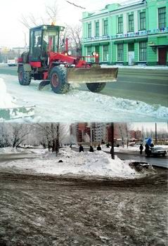 На фото: дорога в центре и на окраине Омска