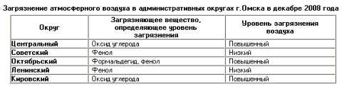 По сравнению с соответствующим периодом прошлого года уровень загрязнения не изменился (в декабре 2007 г. уровень загрязнения повышенный, СИ=2, НП=3% - хлорид водорода, фенол и формальдегид).