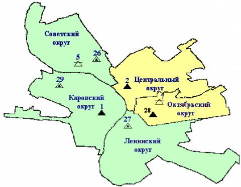 Расположение пунктов наблюдения за загрязнением атмосферы г.Омска
