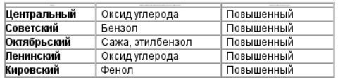 Повышенный уровень оксида углерода преобладал в Центральном и Ленинском округах, повышенный уровень бензола, сажи и фенола - в Советском, Октябрьском и Кировском округах.