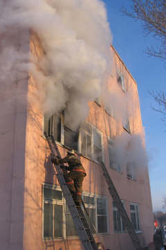Сегодня же произошел еще один пожар - в здании профессионально-технического училища №36, на Левобережье (ул. 2-я Солнечная, 27). Пожар вспыхнул на 4 этаже, после чего в здании сработала пожарная сигнализация. До прибытия пожарных из ПТУ эвакуировали 68 учащихся и 13 человек из обслуживающего персонала. На тушение пожара были задействованы 11 единиц основной и специальной техники, 50 человек личного и руководящего состава. Работало 4 звена газодымозащитной службы. Огонь повредил учебный класс на площади 18 "квадратов". Погибших и травмированных нет. Сейчас на месте пожара работает следственно-оперативная группа.