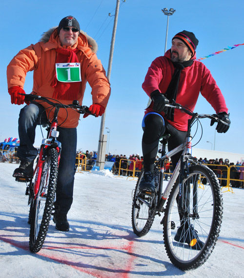 В Омске зимним велокроссом открылся весенний велосезон. Участие в нем принял известный автогонщик Александр Фабрициус. Совершив круг почета на велосипеде, он устроил показательные выступления на автомобиле. Автогонщик продемонстрировал головокружительные виражи и танцы на льду.