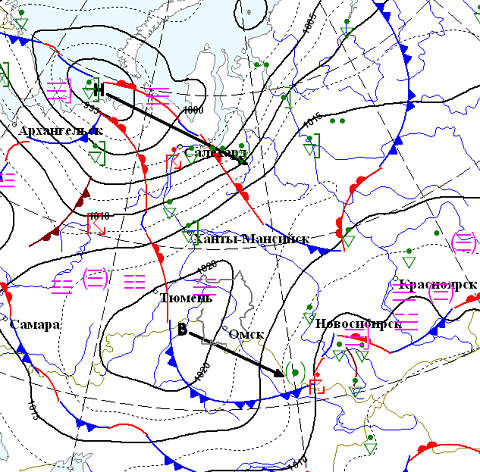 Карта, прогнозы (С) gismeteo.ru, omsk-meteo.ru