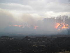 В Центральном округе Омске в СНТ "Ивушка" произошел подобный пожар. С травы, горевшей на 1000 "квадратах", пламя перешло на постройки двух дачных участков. В итоге на одном из участков на площади 48 квадратных метров обгорел двухэтажный дачный дом 1985 года постройки, а также кирпичная баня - на 9 "квадратах". На втором участке, до которого добрался огонь, одноэтажный дачный дом 1985 года постройки поврежден огнем на площади 30 квадратных метров.