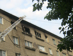 В результате происшествия были повреждены домашние вещи на площади 30 квадртаных метров, закопчены стены подъезда на пятом этаже на площади 100 квадратных метров, а также обрушилась межквартирная перегородка из гипсолита и была вскрыта кровля дома на площади 10 квадратных метров.