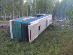 Сегодня ночью в Муромцевском районе съехал в кювет и опрокинулся пассажирский автобус. 34 туриста возвращались в Курганскую область с озера Данилово. Шестерых доставили в районную больницу с ушибами.