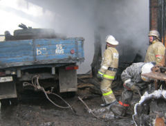В Называевске поздно вечером произошел пожар в частном гараже по улице Мичурина. В нем находилось две машины - "ВАЗ" и "ЛуАЗ" (первый отечественный переднеприводный автомобиль). Оба восстановлению не подлежат. Кроме того, огнем поврежден гараж на площади 21 квадратный метр. К счастью, удалось предотвратить переход огня на дом и другие постройки. По предварительной информации, причиной пожара стало нарушение правил технической эксплуатации электрооборудования. Материальный ущерб еще подсчитывается.