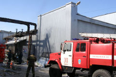 В административном здании огонь повредил пенопласт, утеплитель стен и потолок на площади 30 квадратных метров, на складе полностью закопчены стены и потолок. Кроме того, закопчены товары на стеллажах смежного склада. Погибших и травмированных нет. По предварительным данным, пожар случился из-за того, что при монтаже холодильной установки загорелся пенопласт.