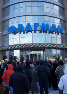 На данный момент из 13 этажей «Флагмана» функционируют лишь 4. Однако, как сообщили в компании «Арсенал-центр» объект будет полностью сдан в эксплуатацию уже в этом году. Открытие «Флагмана» вызвало среди омичей большой интерес. Желающих оценить новый объект оказалось настолько много, что на площадке перед торговым комплексом практически не было пустого места. Церемонии перерезания красной ленточки предшествовала увлекательная шоу-программа. Гостей развлекали конкурсами, танцами, загадками, призами и фейерверком.
